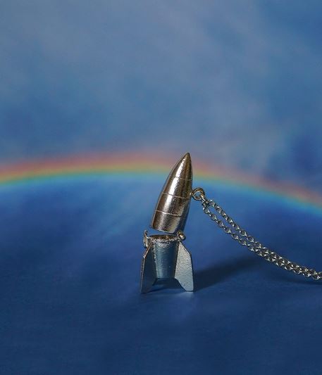 A soaring rocket becomes a locket in this impactful necklace, with space inside to hold a special rolled up message! Alex Monroe Jewellery is inspired by nature and handcrafted in our London Workshop.