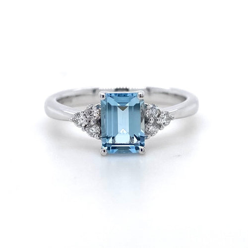18ct White Gold, Octagonal Aquamarine & Diamond Ring