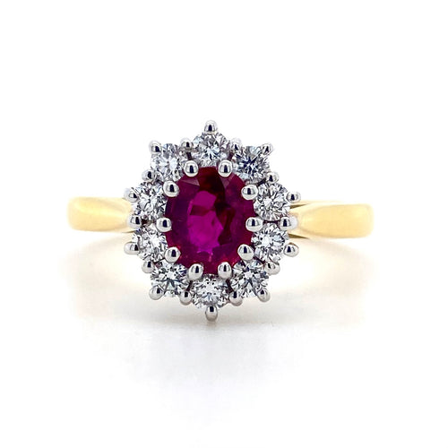 18ct Yellow & White Gold, 0.68ct Ruby & Diamond Cluster Ring