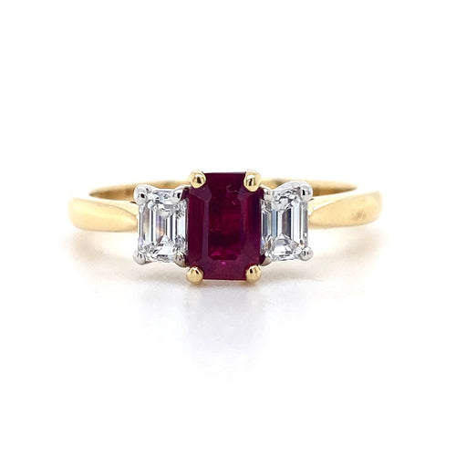 18ct Yellow & White Gold, 0.56ct Ruby & Diamond Trilogy Ring