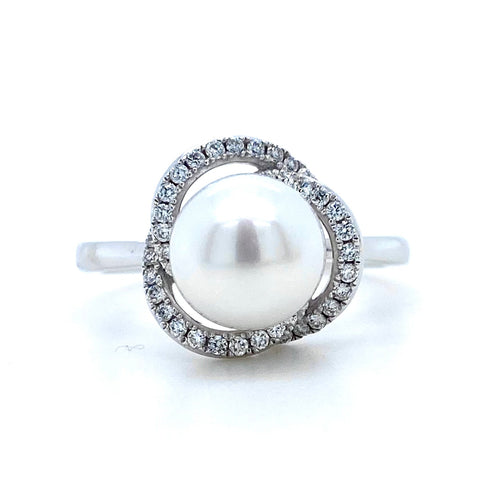 18ct White Gold, Pearl & Diamond Drop Earrings