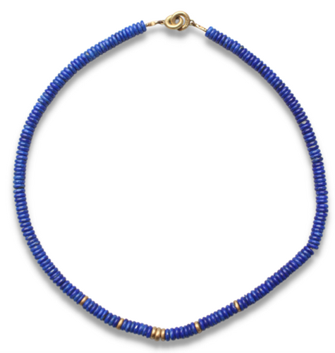 18ct Yellow Gold, Lapis Lazuli Bead Necklace