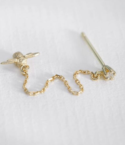 Diamond Stud Earrings with Fine Chain Bee Drops, 18ct Yellow Gold