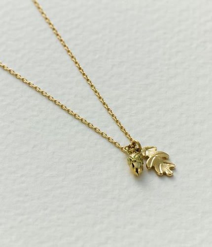 Teeny Tiny Oak Leaf & Acorn Necklace, 18ct Yellow Gold