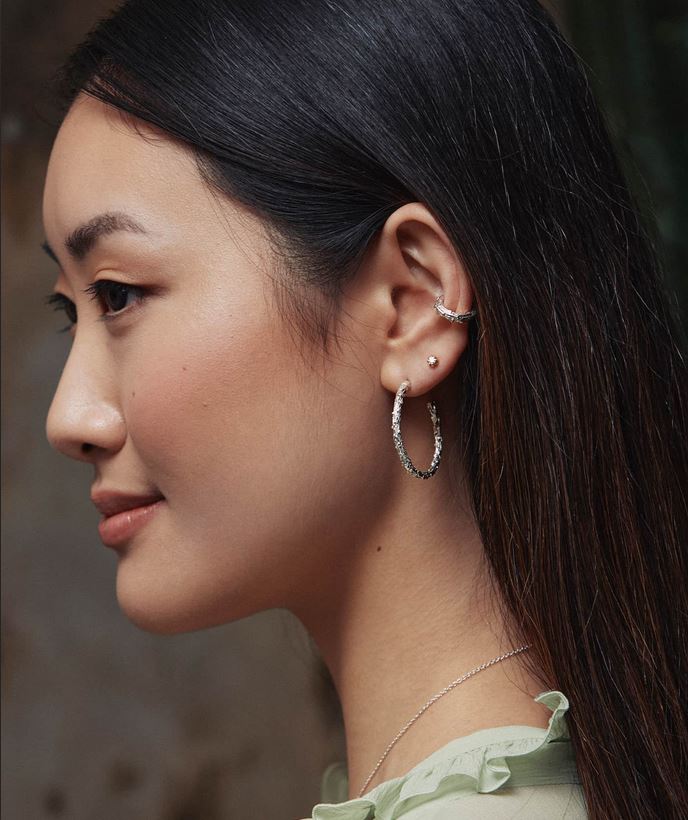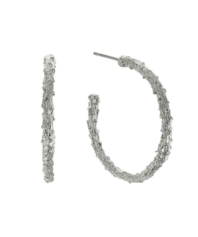 Scots Pine is an evergreen conifer native to northern Europe and trees can live for up to 700 years! Inspired by their uniquely scaly bark, these textured hoops will take you from day to night, catching light along the way. Handmade in our London workshop.
