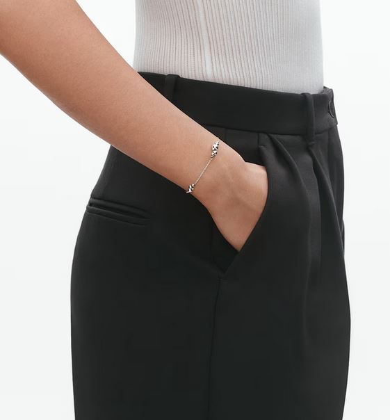 This dainty, sterling silver bracelet is adorned with elegant clusters of grape-shaped beads that are inspired by the iconic fruit motifs that adorned Georg Jensen’s holloware designs from the early 1900s. It is fitted with a handy slider lock to ensure it fits the wearer’s wrist perfectly.