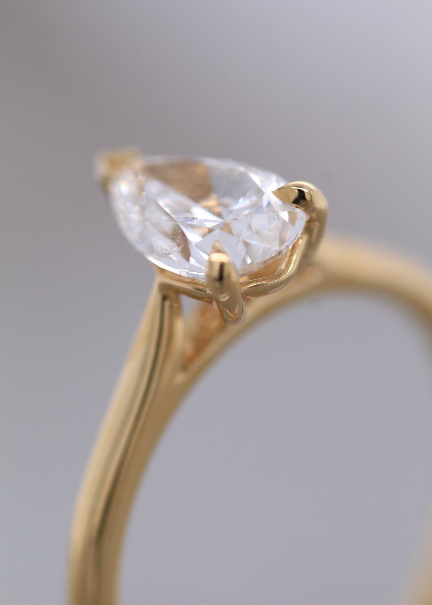 This elegant solitaire engagement ring is beautifully crafted in 18ct Yellow Gold. It features traditional, polished shoulders for a classic look. At its center, a stunning 1.00ct pear-shaped laboratory-grown diamond takes the spotlight, boasting an impeccable D colour and VVS2 clarity. Complete with an IGI laboratory grown diamond certificate (International Gemological Institute) this ring is a timeless design that exudes sophistication and brilliance.