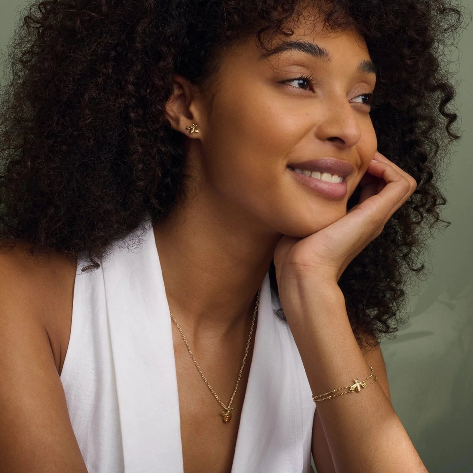 Nature's wonder is a love letter to Britain's flora and fauna. These 9ct yellow gold honey bee earrings are inspired by the symbol of togetherness, generosity and prosperity.