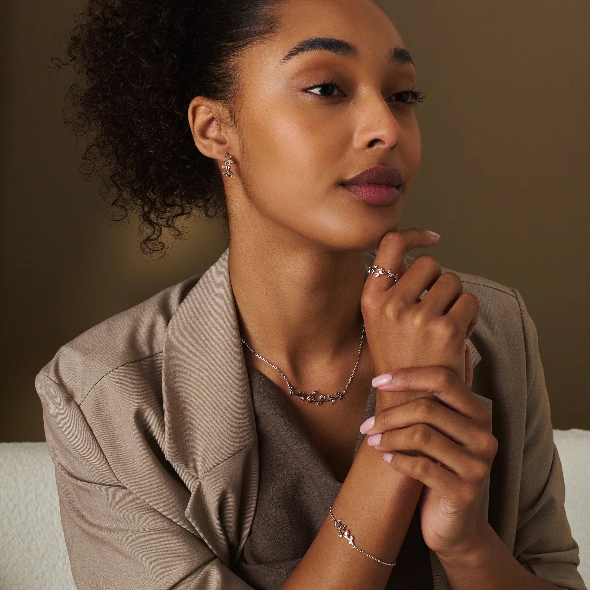 Roots anchored deep in the rich earth, and branches reaching towards the glorious warmth of the sun... The Tree of Life® symbolises creation, renewal, and endless desire for growth and is beautifully depicted in our elegant Tree of Life® Sterling Silver Vine Half-Hoop Earrings with Topaz.