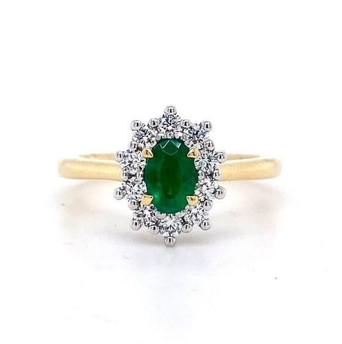 18ct Yellow Gold & Platinum, 0.50ct Emerald & Diamond Cluster Ring
