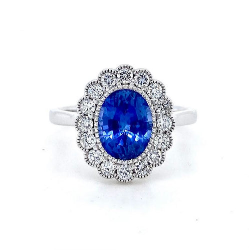 Platinum, 1.45ct Sapphire & Diamond Cluster Ring