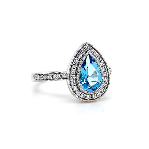 18ct White Gold, 1.22ct Tourmaline & Diamond Trilogy Ring