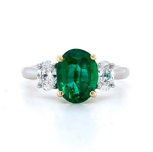 Platinum & 18ct Yellow Gold, 1.46ct Emerald & Diamond Trilogy Ring