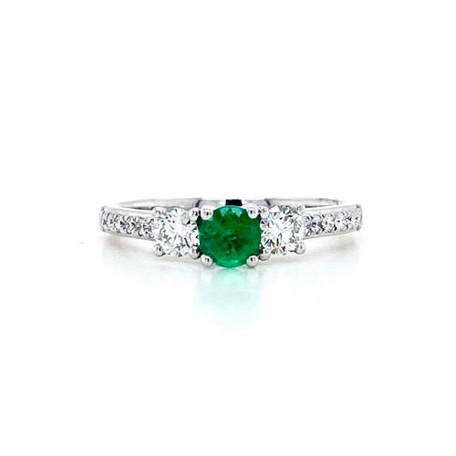 Platinum, 0.28ct Emerald & Diamond Trilogy Ring