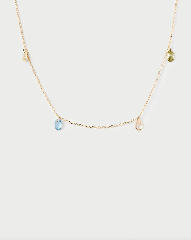 Gold-plated chain necklace with four multicolor zirconia drop pendants.