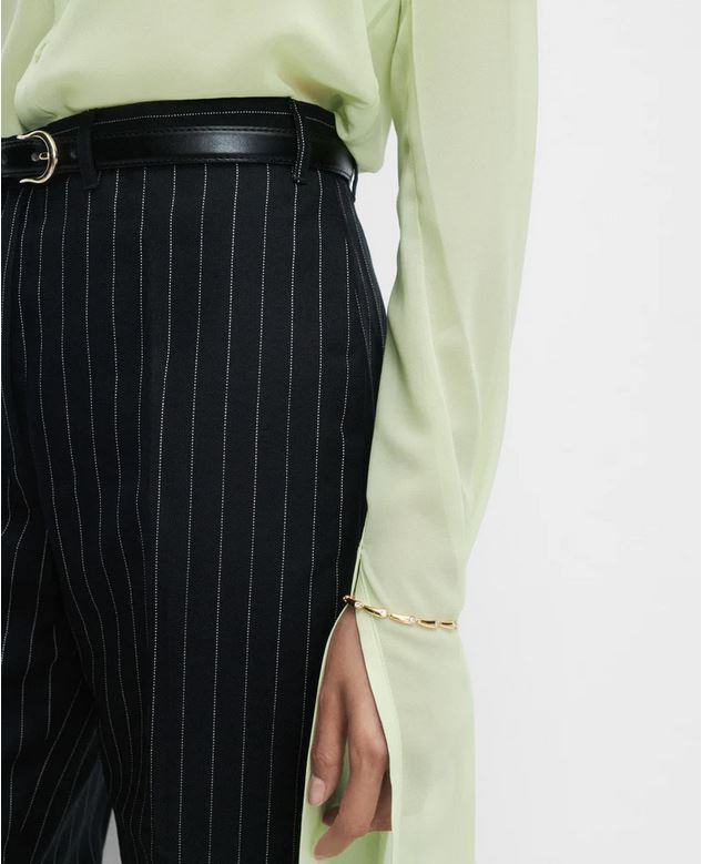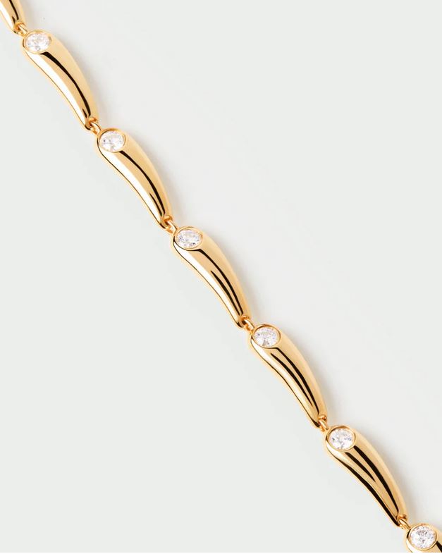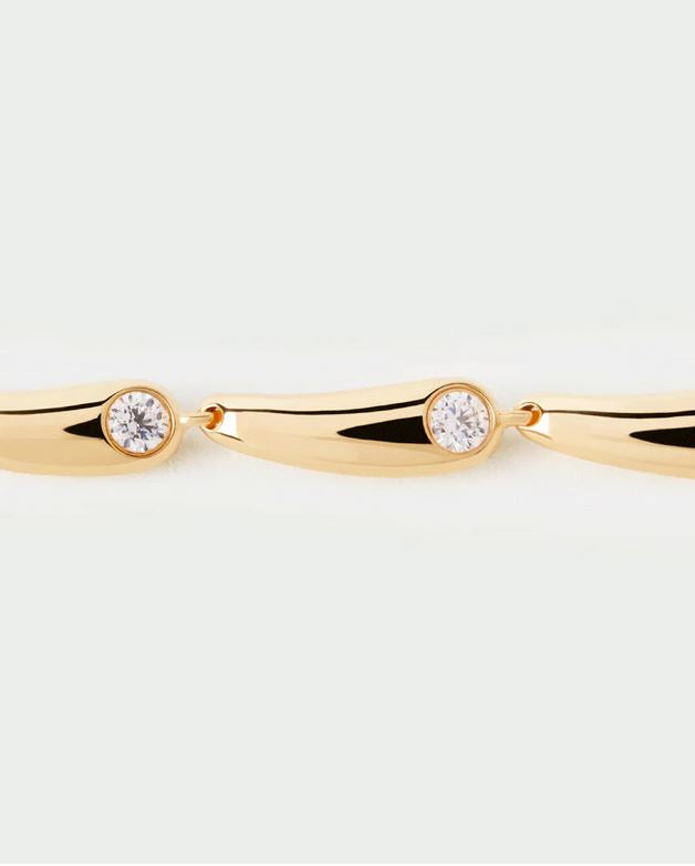 Gold-plated modern bracelet with drop-shaped links accented with white zirconia.