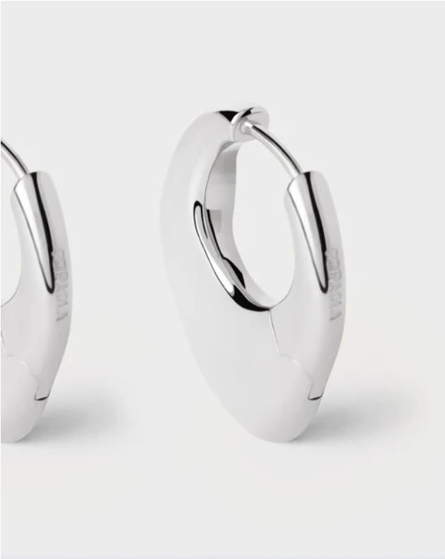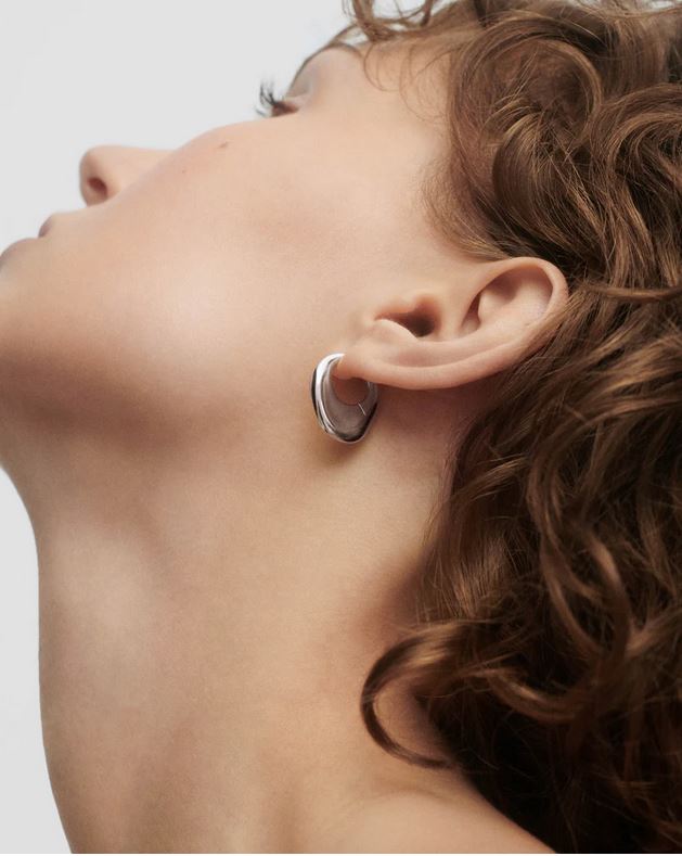 Silver fluid hoop earrings with contrasting irregular design and chunky base.