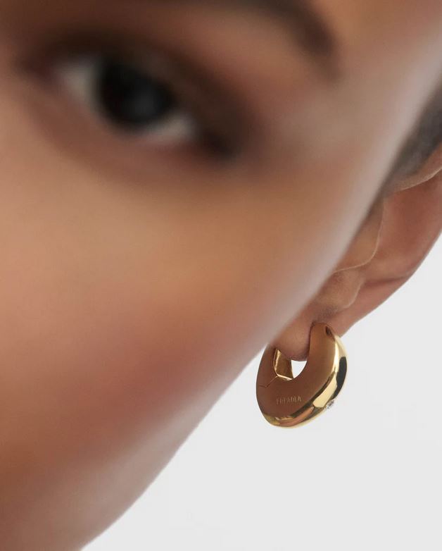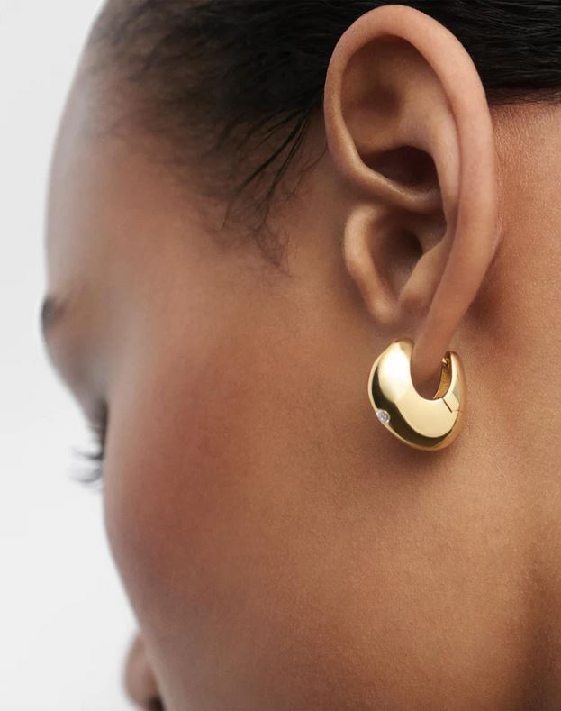 Small wavy hoop earrings adorned with sparkling zirconia accents.